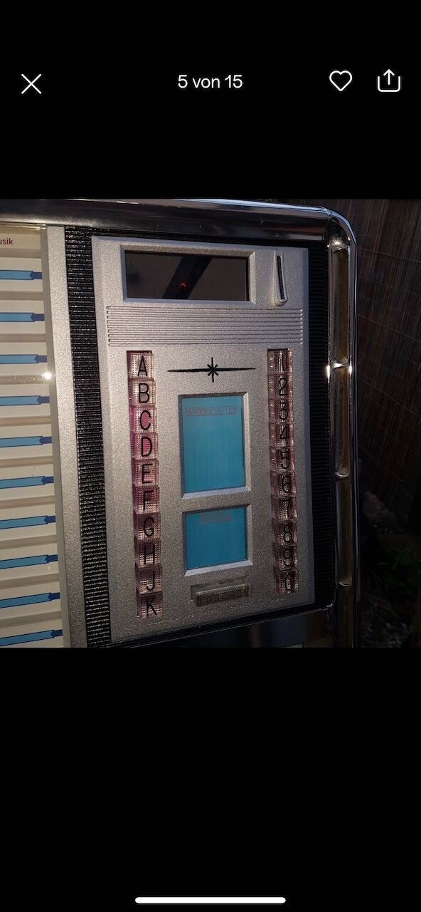Diese Rock-Ola Wandbox ist ursprünglich eine 403 aus 1962 - mit ausgetauschter Tür einer 430 (1965). Guter gewarteter Zustand.
